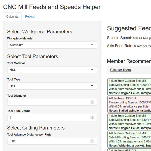 A small application to calculate feeds and speeds for the CNC milling machine at Cheltenham Hackspace.